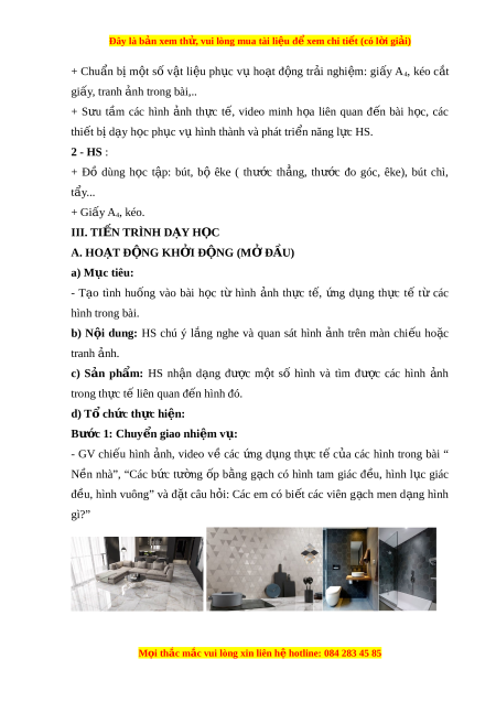 Đây là bản xem th , vu ử i lòng mua tài li u ệ đ xe ể m chi ti t ế (có l i ờ gi i ả ) + Chu n ẩ bị m t ộ số v t ậ li u ệ ph c ụ vụ ho t ạ đ ng ộ tr i ả nghi m ệ : gi y ấ A4, kéo c t ắ giấy, tranh nh ả trong bài,.. + S u ư t m ầ các hình nh ả th c ự t , ế video minh h a ọ liên quan đ n ế bài h c, ọ các thi t ế b d ị y ạ h c ph ọ c ụ v hì