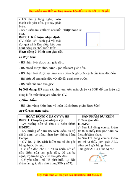 ứ : Sau khi h c ọ xong bài này HS - Nh n ậ đư c t ợ am giác đ u, hì ề nh vuông, l c gi ụ ác đ u. ề - Mô tả m t ộ số y u ế tố c ơ b n( ả c nh, ạ góc, đư ng ờ chéo) c a ủ tam giác đ u ề ( ba c nh ạ b ng ằ nhau, ba góc b ng ằ nhau); hình vuông( b n ố c nh ạ b ng ằ nhau, m i ỗ