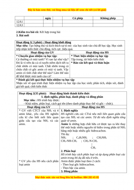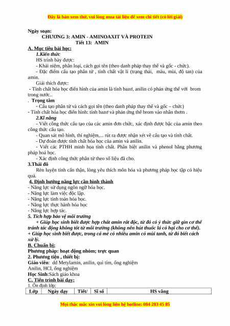 CHƯƠNG 3: AMIN - AMINOAXIT VÀ PROTEIN Tiết 13: AMIN A.