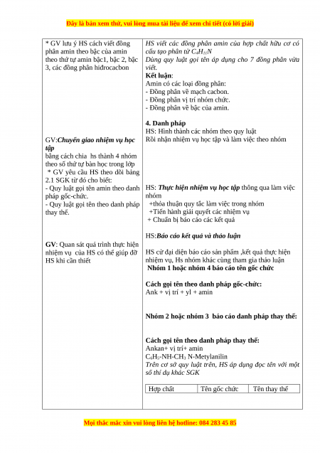 + Giúp học sinh biết được hợp chất amin rất độc, từ đó có ý thức giữ gìn cơ thể