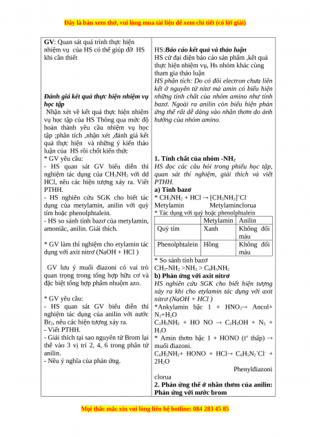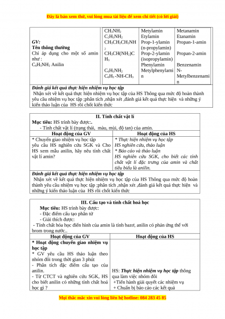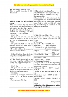 Giáo viên: dd Metylamin, anilin, quì tím, ống nghiệm Anilin, HCl, ống nghiệm