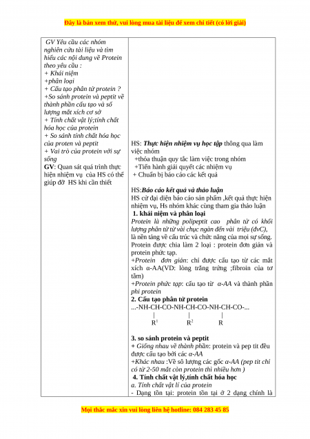hiểu các nội dung về Protein theo yêu cầu : + Khái niệm +phân loại