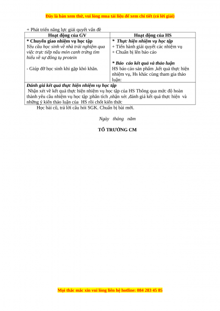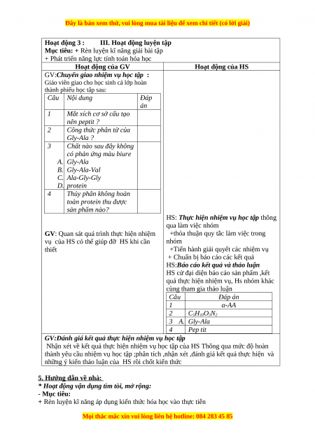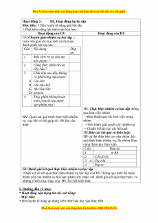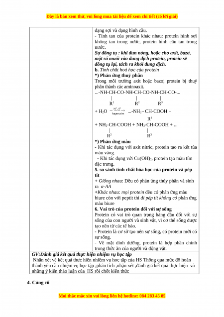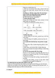 Tính chất hóa học của protein: phản ứng thủy phân; phản ứng màu biure 2.Kĩ năng
