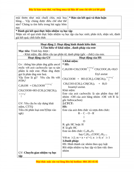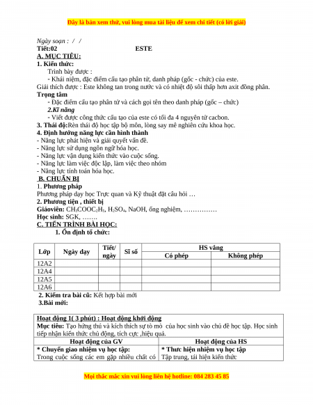 Ngày soạn : / / Tiết:02 ESTE A. MỤC TIÊU: 1. Kiến thức: Trình bày được :