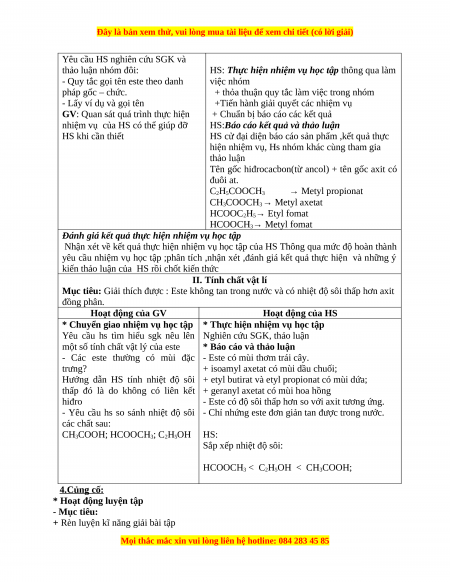 Mục tiêu: Giải thích được : Este không tan trong nước và có nhiệt độ sôi thấp hơn axit đồng phân.