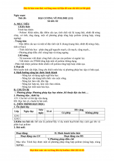 - Polime: Khái niệm, đặc điểm cấu tạo, tính chất vật lí( trạng thái, nhiệt độ nóng