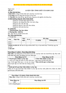 Mục tiêu: Củng cố tính chất vật lí, hoá học của kim loại. Hoạt động của Hoạt động của HS GV GV/: Chuyển giao