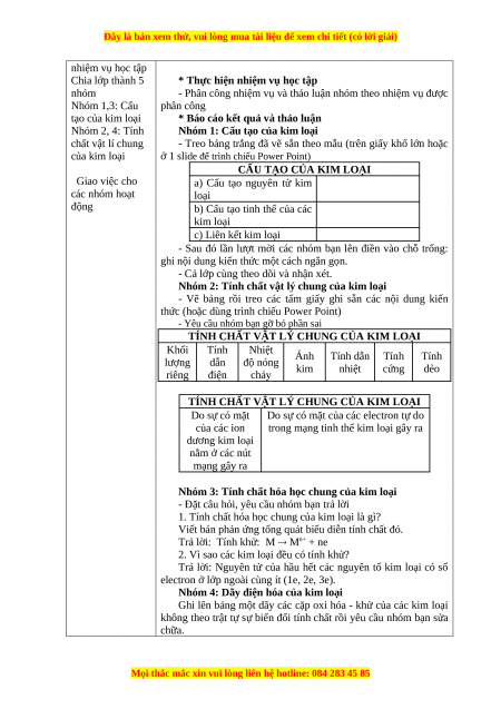 - Phân công nhiệm vụ và thảo luận nhóm theo nhiệm vụ được Nhóm 1,3: Cấu phân công tạo của kim loại