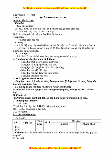 + Nhận biết được tác động tới môi trường do điện phân, mạ điện và điều chế kim loại. B . Chuẩn bị: