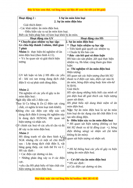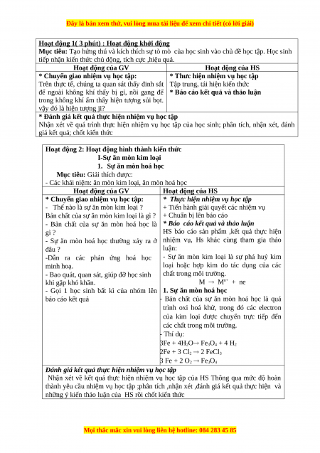 -Dẫn ra các phản ứng hoá học - Sự ăn mòn kim loại là sự phá huỷ kim minh hoạ.