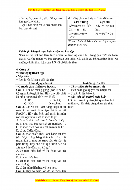 - Gọi 1 học sinh bất kì của nhóm lên 1. Sự ăn mòn hoá học báo cáo kết quả