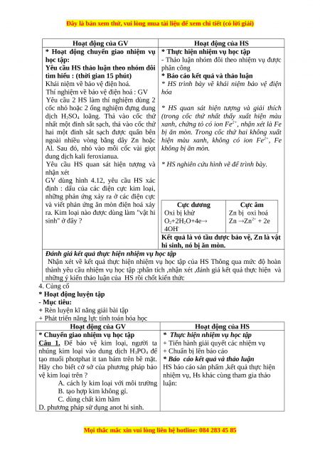Thí nghiệm về bảo vệ điện hoá : GV hóa