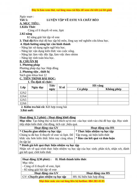 Bộ giáo án Hóa 12 học kì I được cập nhật liên tục trong gói này từ nay đến hết tháng 6/2023.