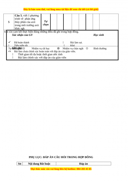 Câu 5. viết 1 phương trình về phản ứng 5 thủy phân của axit Tự trong môi trường axit chọn khác sgk