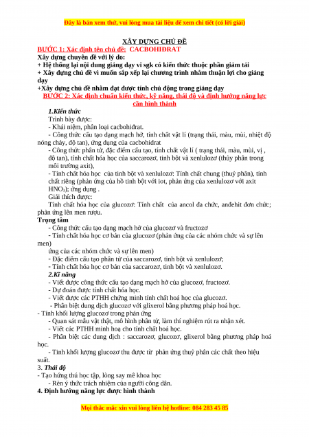 ƯỚC 1: Xác định tên ch ủ đề: CACBOHIĐRAT
