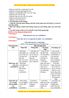 - Viết được các - Làm các bài - So sánh được những tính phản ứng thể tập định tính tính chất hóa chất hóa học hiện tính chất về cacbohiđrat học giữa các