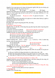 Câu 7: Cacbohiđrat nhất thiết phải chứa nhóm chức của A. xeton. B. anđehit. C. amin. D. ancol.
