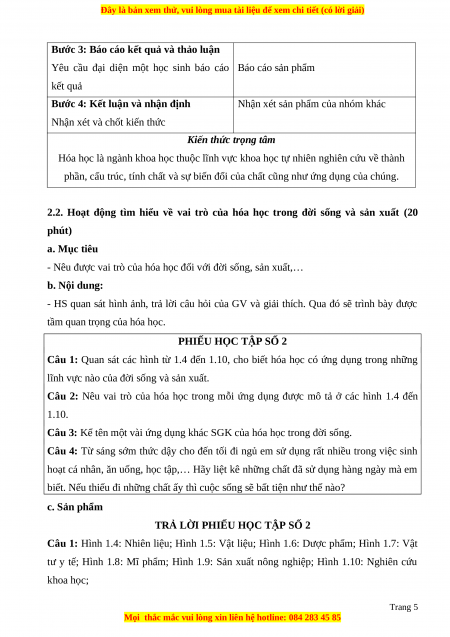 2.2. Hoạt động tìm hiểu về vai trò của hóa học trong đời sống và sản xuất (20