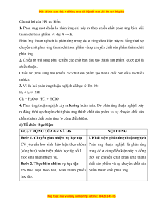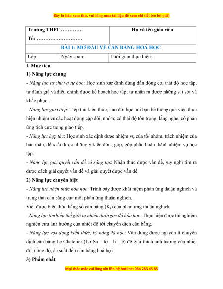 BÀI 1: MỞ ĐẦU VỀ CÂN BẰNG HOÁ HỌC Lớp: Ngày soạn: Thời gian thực hiện: I. Mục tiêu 1) Năng lực chung