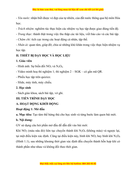 GV chiếu hình ảnh: Sự biến đổi NO2 và N2O4.
