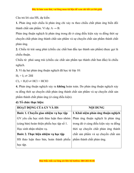 a) Mục tiêu: Nêu được khái niệm phản ứng thuận nghịch. b) Nội dung: