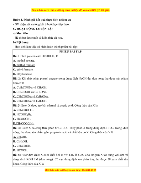 - Những hợp chất là ester: CH3COOC2H5 (A), HCOOCH3 (B), HCOOC2H5 (D), C6H5COOCH3 (E).