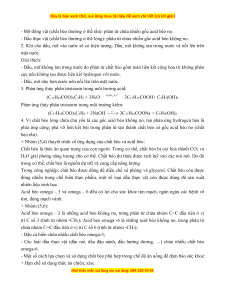 thuỷ phân) và của chất béo (phản ứng hydrogen hoá chất béo lỏng, phản ứng oxi hoá chất béo bởi oxygen không khí).
