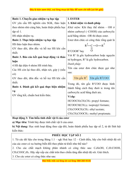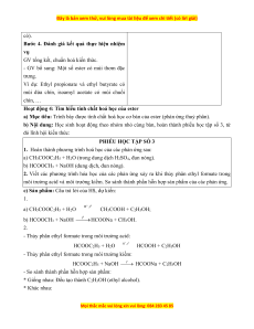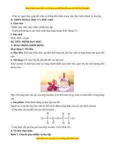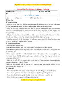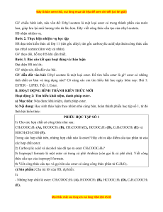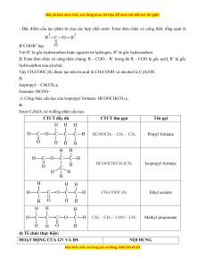 Tổ: ……………………… BÀI 1: ESTER - LIPID Lớp: Ngày soạn: Thời gian thực hiện: I. Mục tiêu 1) Năng lực chung
