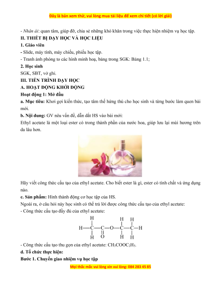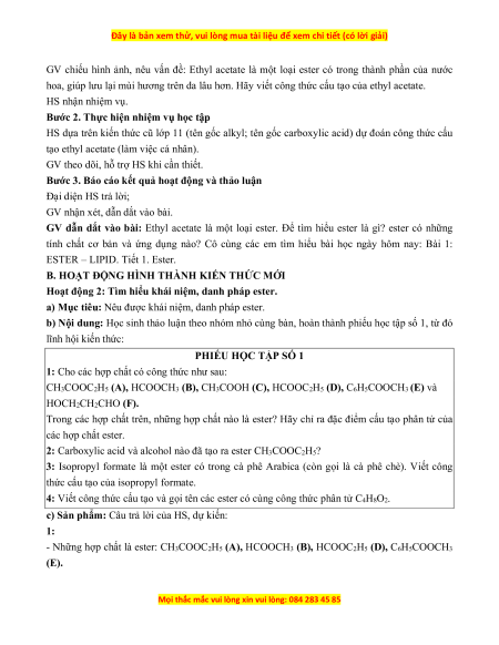 GV dẫn dắt vào bài: Ethyl acetate là một loại ester. Để tìm hiểu ester là gì? ester có những