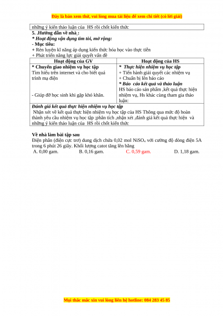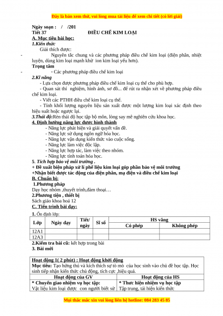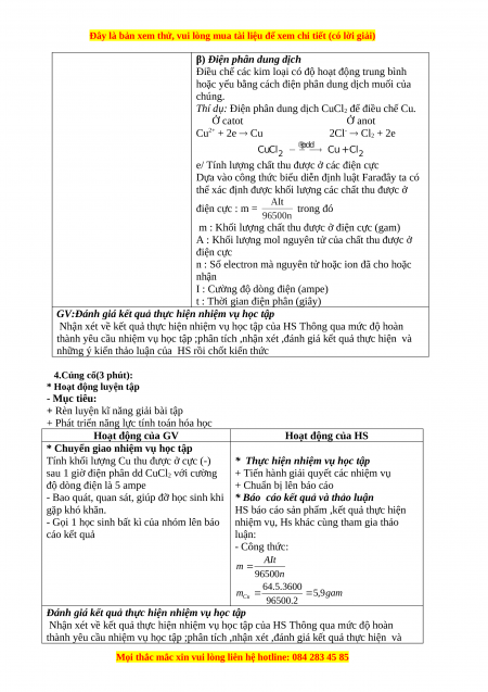 +Nhận biết được tác động của điện phân, mạ điện và điều chế kim loại B . Chuẩn bị: 1.Phương pháp