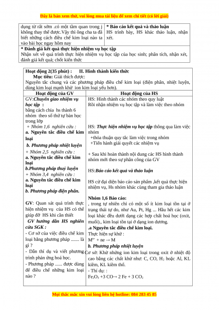 - Quan sát thí nghiệm, hình ảnh, sơ đồ... để rút ra nhận xét về phương pháp điều chế kim loại.
