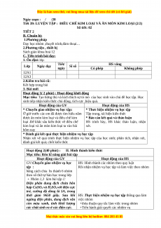 Tiết 39: LUYỆN TẬP : ĐIỀU CHẾ KIM LOẠI VÀ ĂN MÒN KIM LOẠI (2/2) Số tiết: 02 TIẾT 2 B . Chuẩn bị: 1.Phương pháp