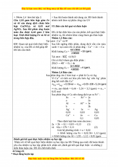 Sau phản ứng có Cu nên dung dịch tạo ra Fe2+ : Fe Fe2+ + 2e a 2a Al Al3+ + 3e b 3b Ag+ + 1e Ag 0,03 0,03 0,03 Cu2+ + 2e Cu 0,1 0,05