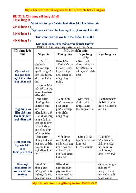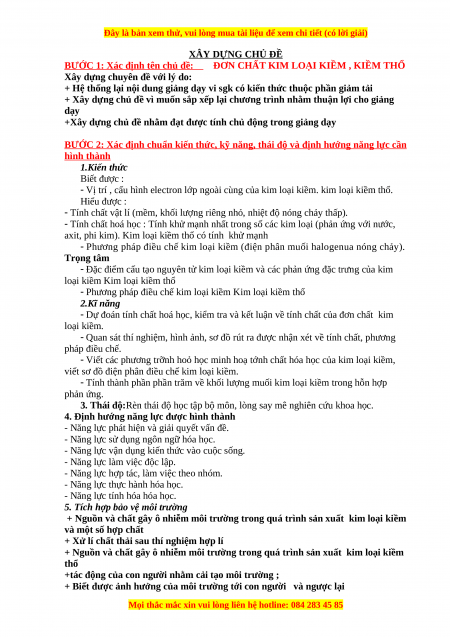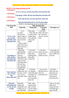 loại kiềm ,kim kim loại kiềm nóng chảy loại kiềm thổ thổ. thấp). - Nhận ra được một số kim loại kiềm, kim loại kiềm thổ - Biết được - Giải thích - Giải thích - Làm được các phương pháp