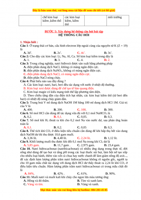 Câu 14. Để bảo quản natri, người ta phải ngâm natri trong A. dầu hỏa. B. nước. C. phenol lỏng. D. rượu etylic. 2. Thông hiểu
