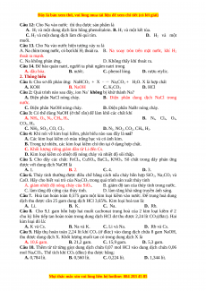 Câu 11: Muối natri và muối kali khi cháy cho ngọn lửa màu tương ứng: