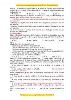 Câu 8. Thể tích khí CO2 ở điều kiện tiêu chuẩn cần dùng để khi hấp thụ hết vào dung