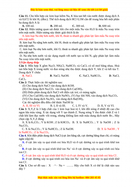 Câu 3: Trong công nghiệp, natri hiđroxit được sản xuất bằng phương pháp