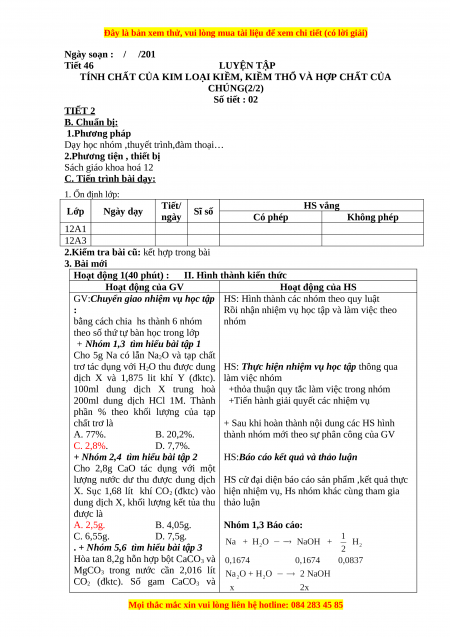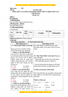 Giáo án Hóa học 12 học kì 2 Tiết 46: Luyện tập: Tính chất của kim loại kiềm, kiềm thổ và hợp chất của chúng