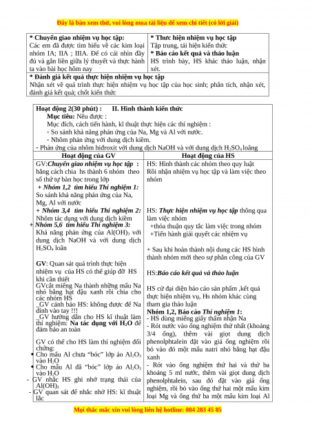 Học sinh : Na, Mg, Al, nước, NaOH, AlCl3, NH3, H2SO4, ống nghiệm, đèn cồn, giá ống nghiệm C