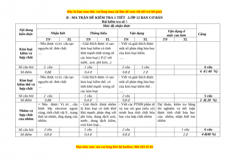 B - MA TRẬN ĐỀ KIỂM TRA 1 TIẾT -LỚP 12 BAN CƠ BẢN Bài kiểm tra số 3