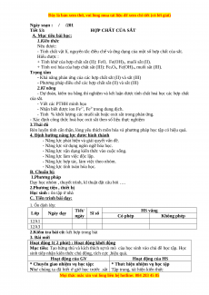 - Dự đoán, kiểm tra bằng thí nghiệm và kết luận được tính chất hoá học các hợp chất của sắt. - Viết các PTHH minh họa