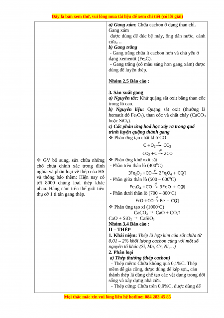 - Định nghĩa và phân loại gang, sản xuất gang (nguyên tắc, nguyên liệu, cấu tạo và