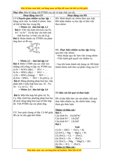 Mục tiêu: Rèn kĩ năng viết PTHH của sắt và hợp chất của sắt.