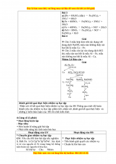 Bài 3 a) 2Fe + 6H2SO4 (đặc) Fe2(SO4)3 + 3SO2 + 6H2O b) Fe + 6HNO3 Fe(NO3)3 + 3NO2 + 3H2O c) Fe + 4HNO3 Fe(NO3)3 + NO + 2H2O d) FeS + HNO3 Fe2(SO4)3 + NO + Fe(NO3)3 + H2O Bài 4 Giải