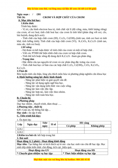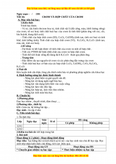 khử, tính lưỡng tính); Tính chất của hợp chất crom (VI), K2CrO4, K2Cr2O7 (tính tan, màu sắc, tính oxi hoá). 2.Kĩ năng