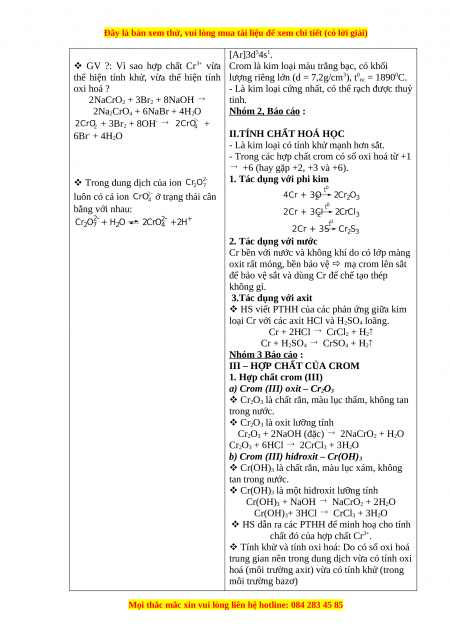 GV ?: Vì sao hợp chất Cr3+ vừa Crom là kim loại màu trắng bạc, có khối