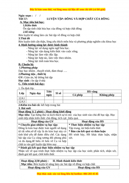 Ôn tập tính chât hóa học của đồng và hợp chất đồng 2.Kĩ năng
