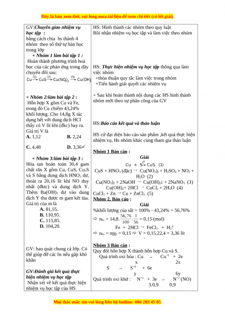 nhóm mới theo sự phân công của GV trong đó Cu chiếm 43,24%
