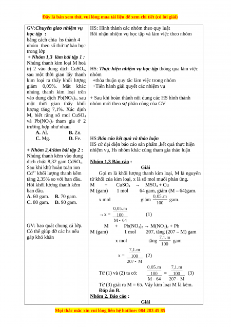 Từ (3) giải ra M = 65. Vậy kim loại M là kẽm. Đáp án B. Nhóm 2, Báo cáo : Giải